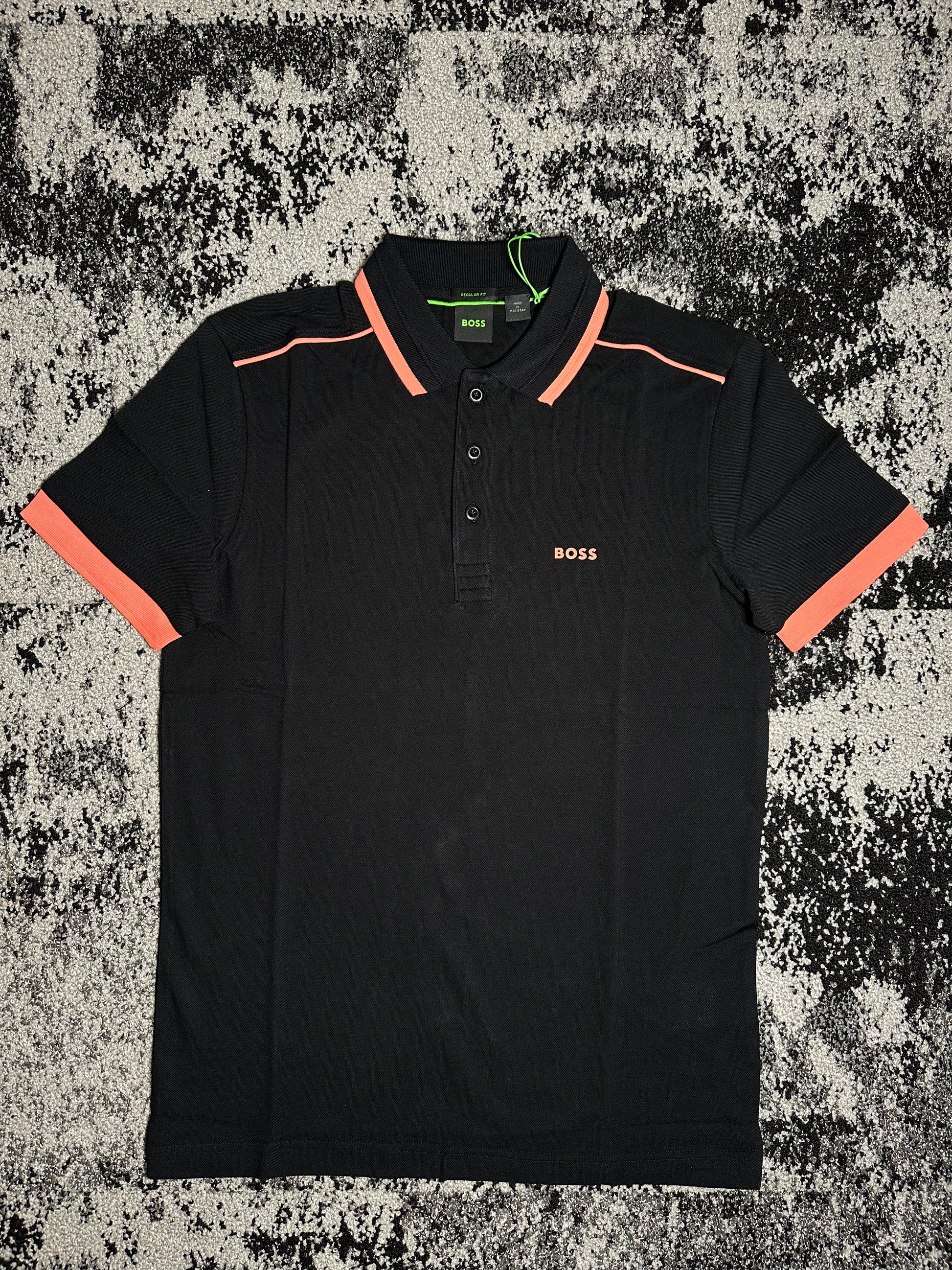A regular polo with stripe design on shoulder
